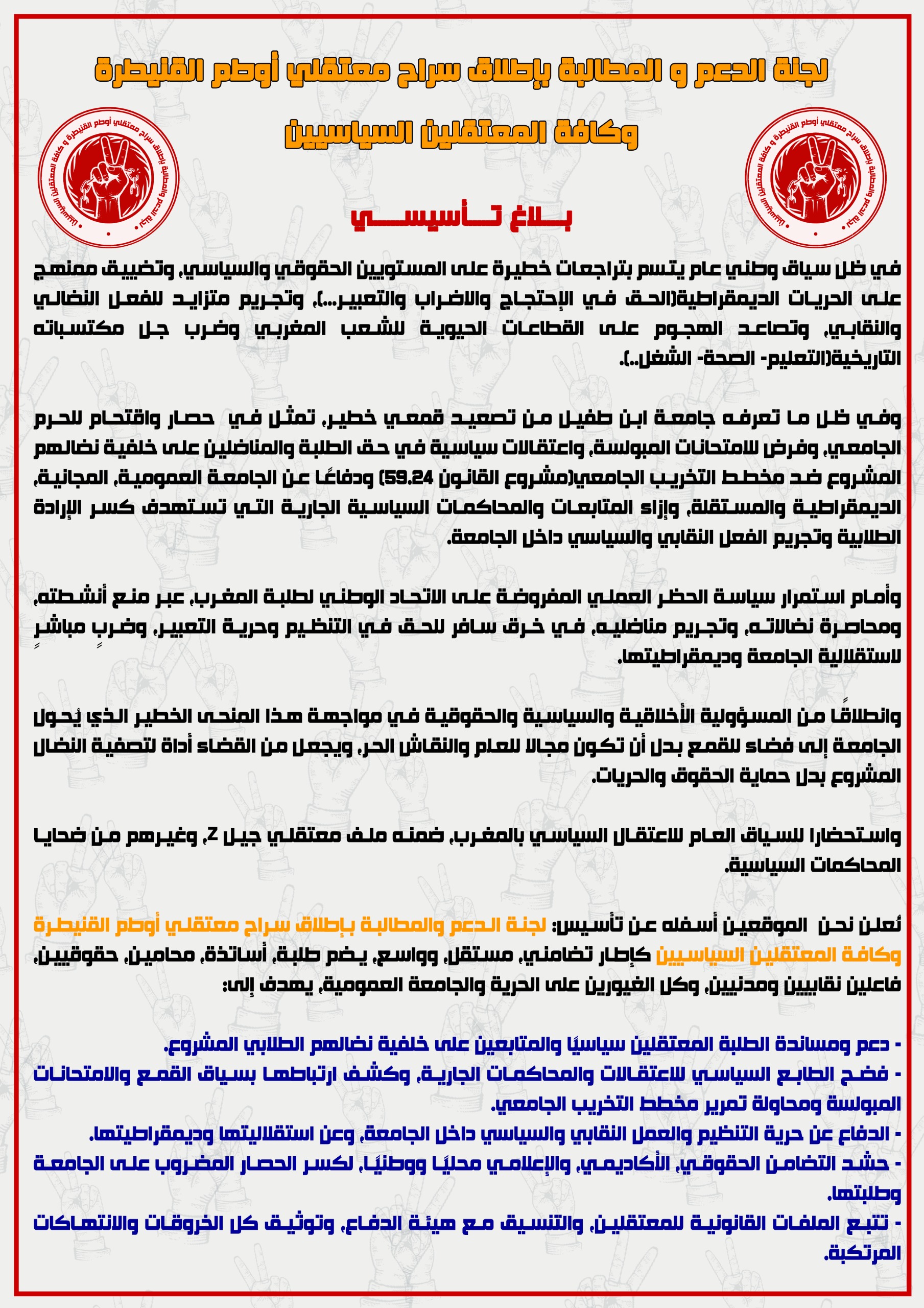 الجبهة المغربية لدعم فلسطين ومناهضة التطبيع تدين الاستفزازات الصهيونية ومحاولات تلغيم العلاقات الأخوية بين المغرب والجزائر